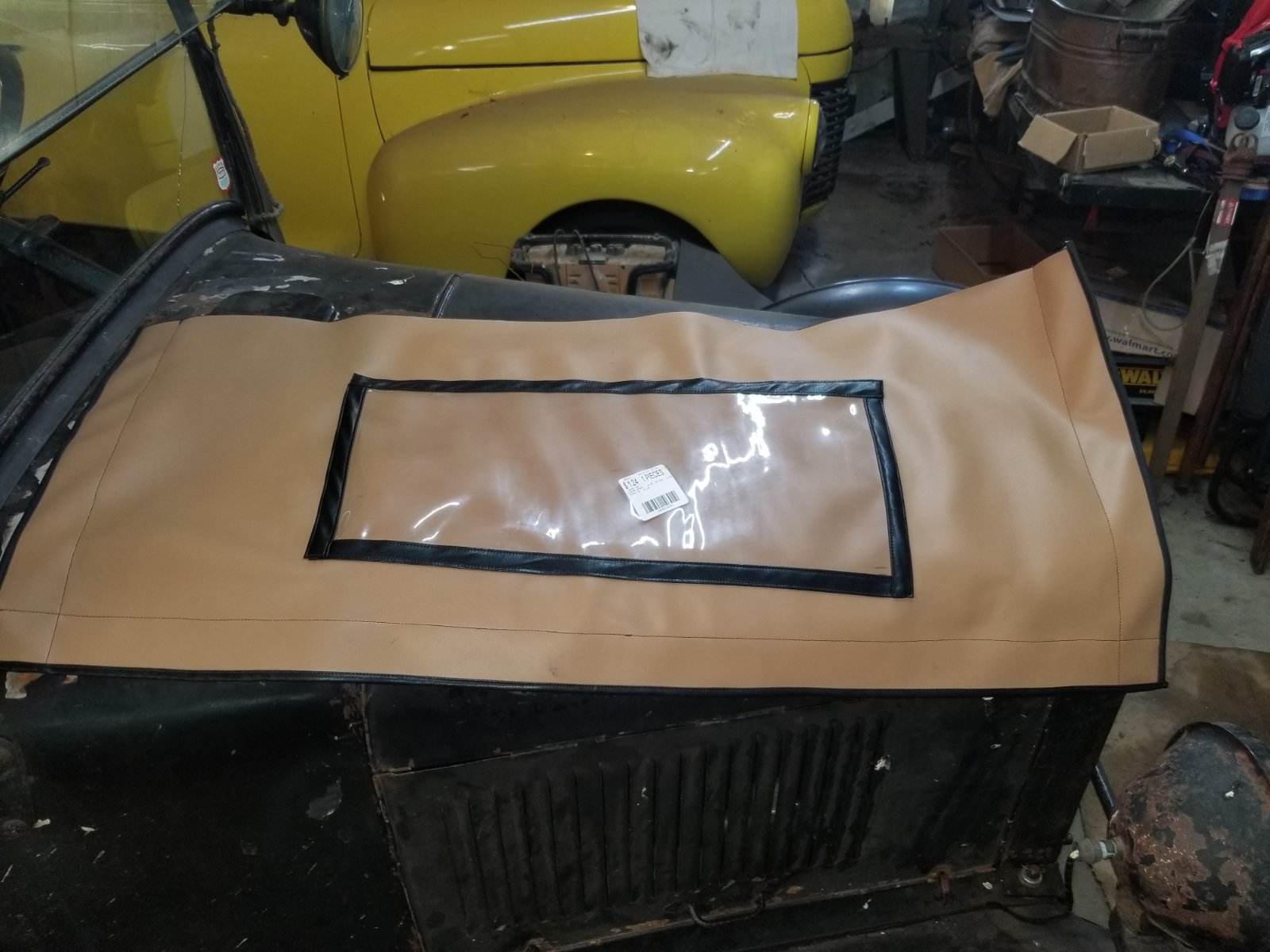 A little bit more! My folks are here from Minnasota for a few weeks. Mom brought my her industrial singer for working on these old heaps. Ive been in training on its use. We made a prototype of the rear flap for the MP cab.