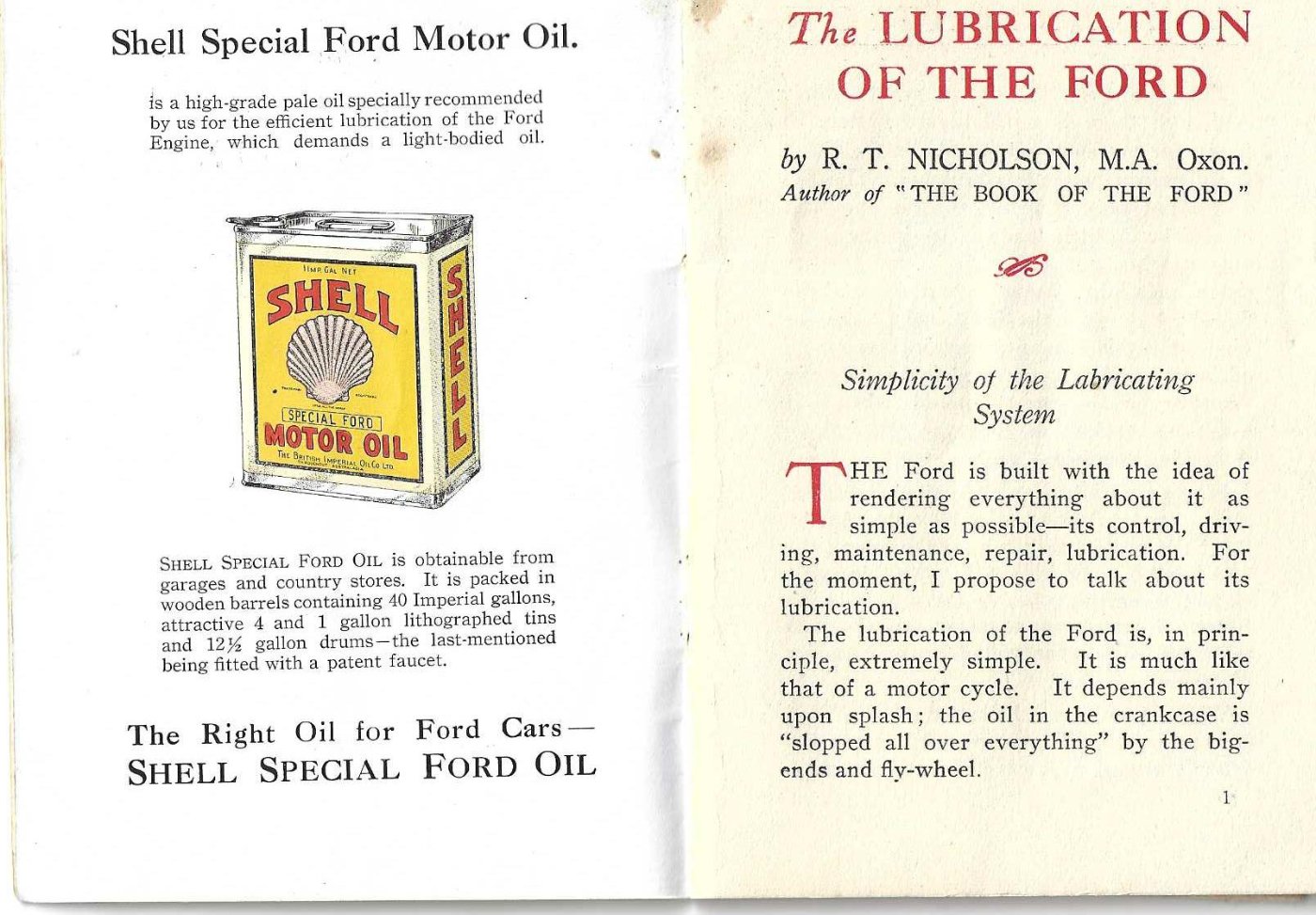 I have been given a booklet put out by Shell Oil in New Zealand that extols the virtues of Shell Oil for Fords. I susepct the same booklet would have been issued in Australia as well with a different front page.