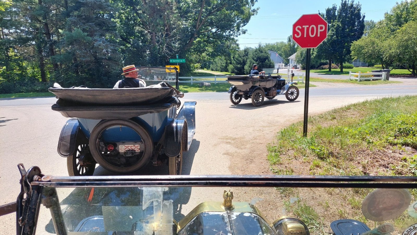 A part of the tour at the Celebration of Brass we got to drive our cars around a small race track. Here is a picture of a Simplex and my T, both cars made it around the track several times. The Simplex was way better because simply its a better car.