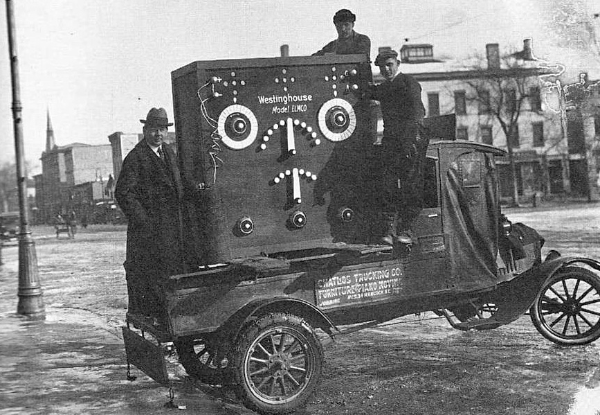 While I have no idea what it is, having a career with AT&T I do know AT&T and Westinghouse were playing with mobile wireless phone networks in the 20's....so... portable radio gear is certainly a good guess.