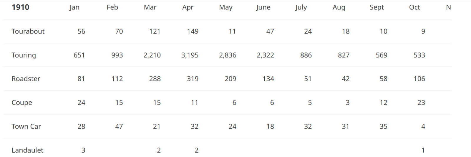 I did find the missing months, figures compiled by Bruce McCalley back in 2007, Calander years, In 1908, 27, 1909, 532 and in 1910, 8.