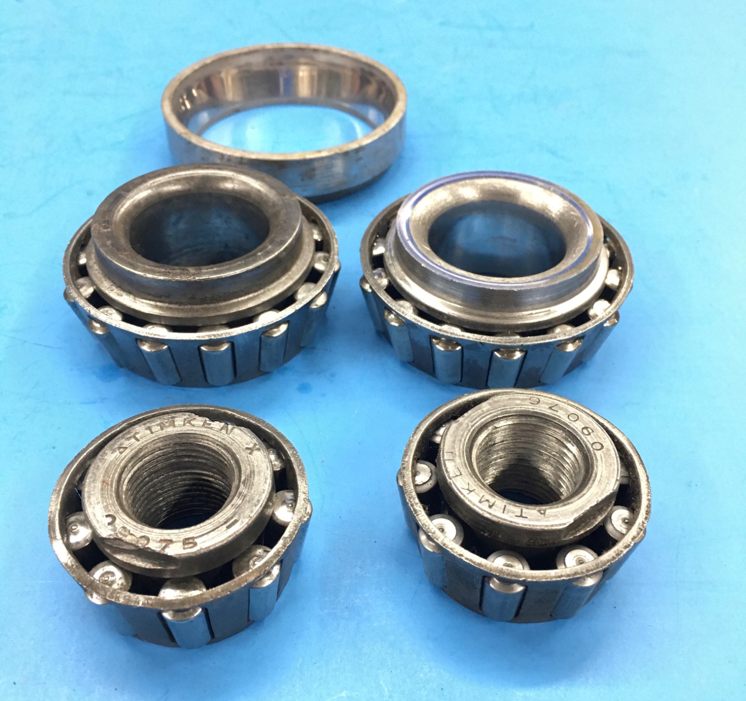 They have been ultrasonic cleaned and are in good used condition. There is one left outer & one right outer. The inners are interchangeable for both sides. One used inner race is included because it looked really good, but is the only good used race I have at this time so it’s thrown in with the bearings as a bonus. $120 for what is pictured and shipping is included anywhere in the USA. Email if you want them. Please do not pm or post here. Thanks.