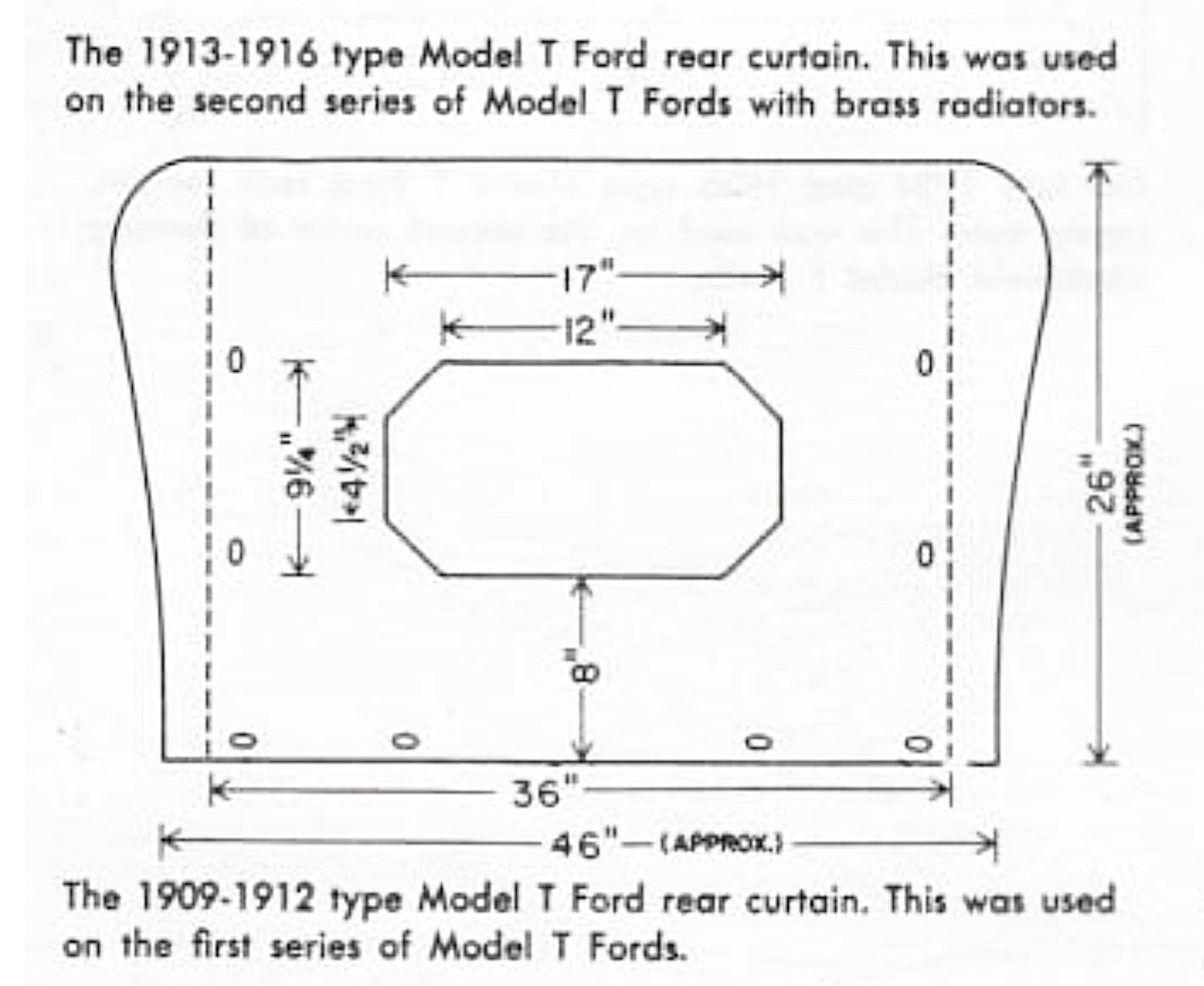 Buried in this old 2010 thread about the 1915 Top it shows all the rear windows and their sizes