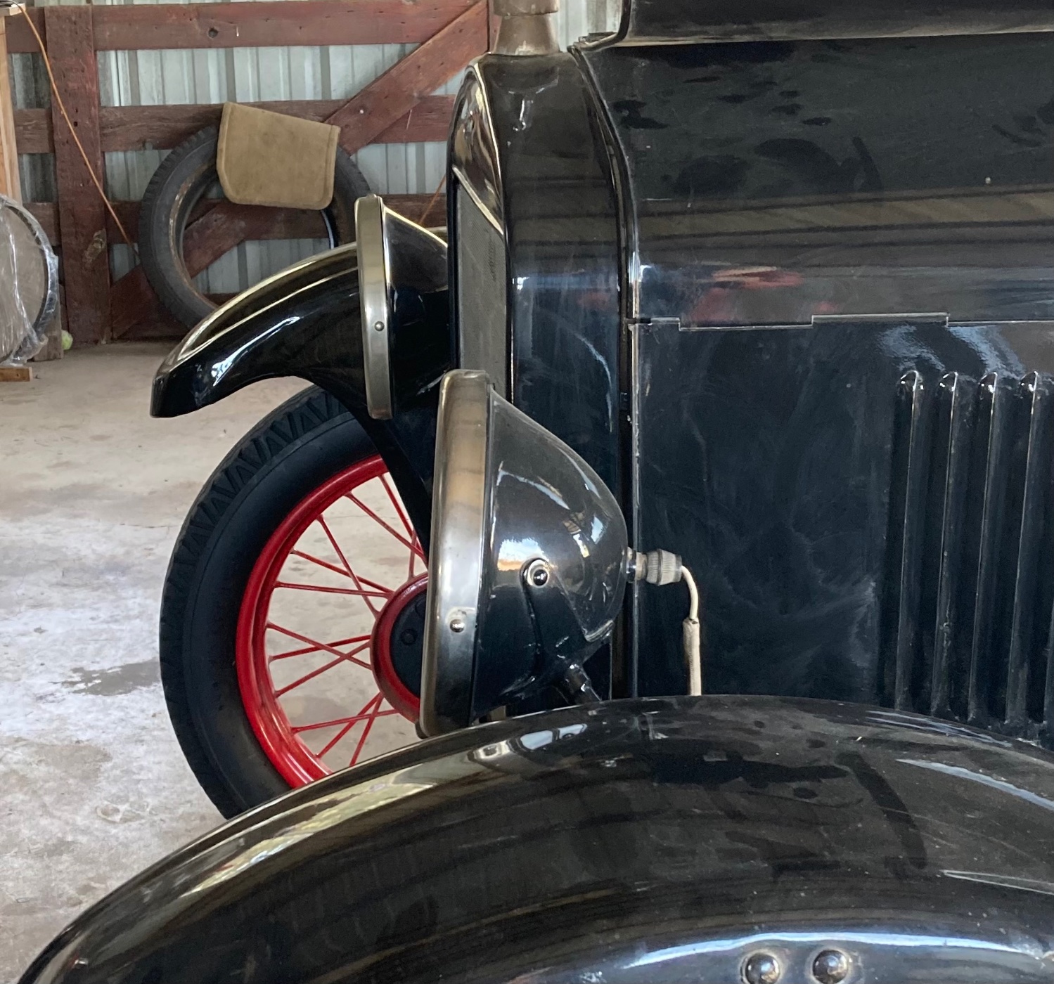 For those who don’t notice or don’t know; Those are very early ‘26 fender mounted lights. They are not mounted to the iron down by the frame, but to the fender sheet metal skirt and stamped steel “fender iron” up on the skirt of the fender. They are not mounted on a bar as in the rest of ‘26-‘27 production.