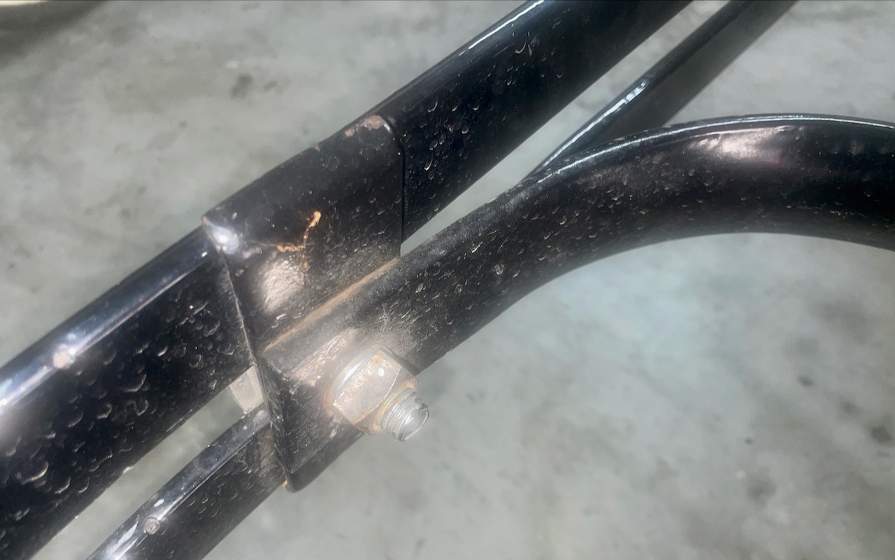 This view is from underneath, as the head of the retaining bolt is placed up in the rear crossmember.