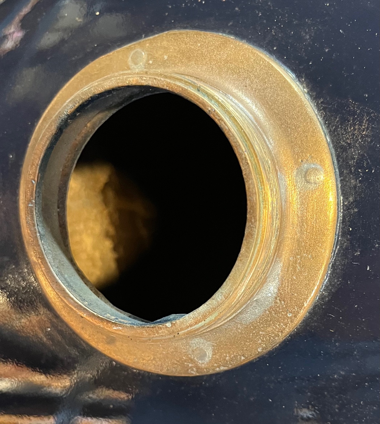 1912 Reproduction Gas Tank that is used. It had been removed from a restored car because gas was stored in it too long. It will need to be chemically cleaned. Comes with an Aluminum gas cap. These are no longer being made. $395 plus shipping. Lang’s 1-800-872-7871