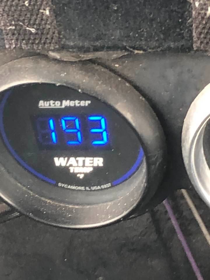 This morning I went to a charity show at an assisted living facility here in Melbourne Florida. It took about an hour to get there at about 30 to 35MPH. The moto meter never showed any temperature but the my gage that I have taped into the goose neck showed the highest temp of 193F. It was 43 degrees when I left. Coming home there was a very little bit of red in the moto meter and the gage showed 205.