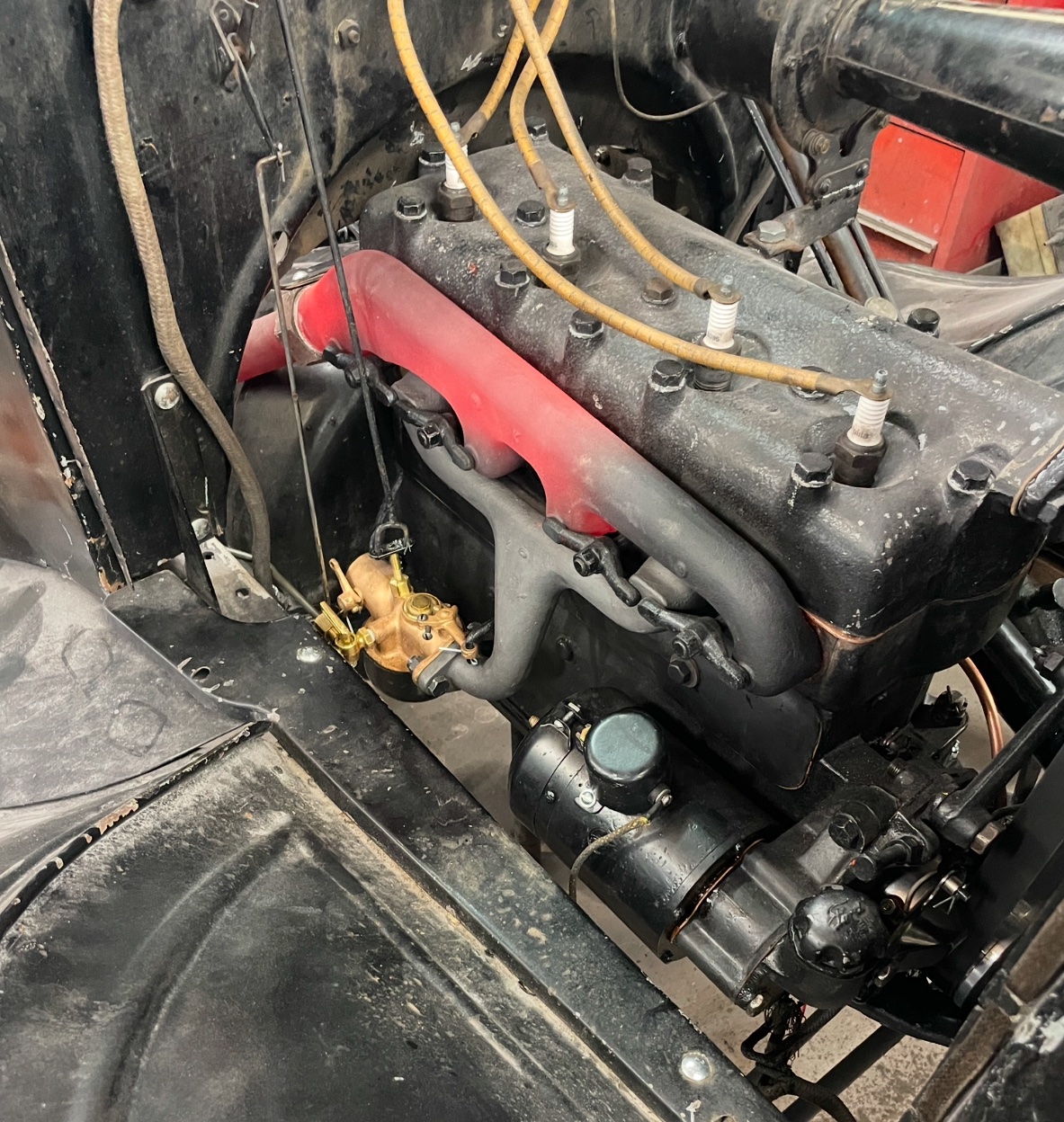When I bought my 1927, I had to get new floorboards, as those were all covered with a thick layer of carbon, because the exhaust pipe was cherry red and started the fire.