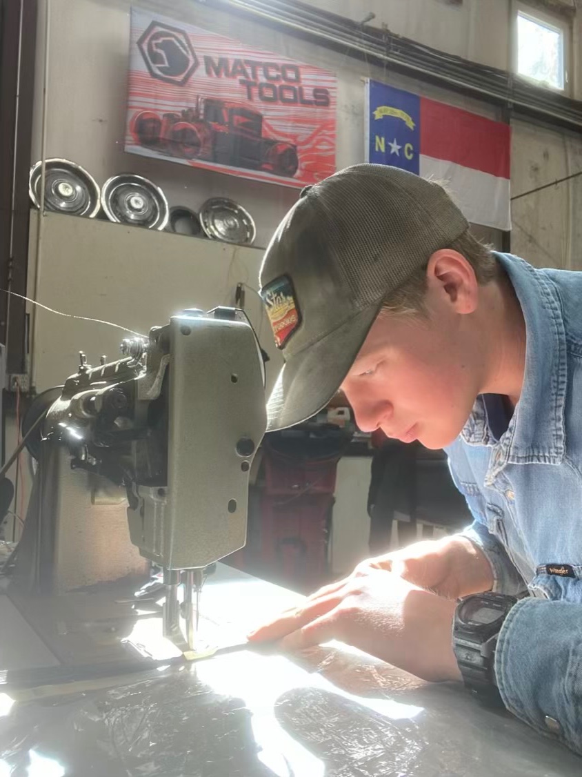One of the many highlights of this build has been the many mentors who have offered Luke advice, parts, time and tricks of the trade. The speedster needed a seat cushion for the metal bomber seat. So Luke sought out help from an upholstery guru, who helped and taught him how to make a padded, vintage looking seat cushion.