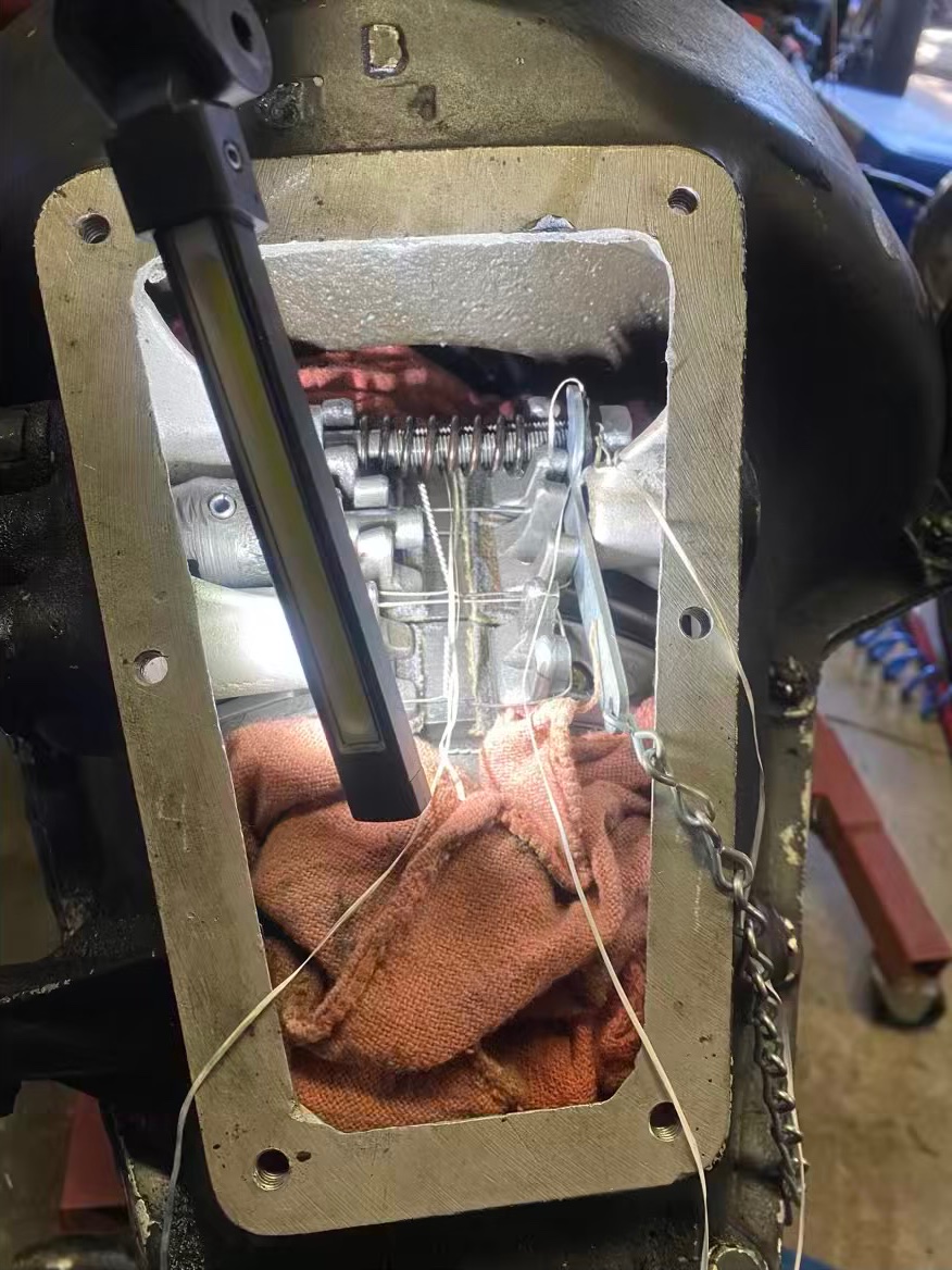 Just a couple weeks before two major T events and Luke started feeling a little clutch slippage. So, he single-handedly pulled the engine, dropped the pan, and removed the hogs head. Pulled the fiber Watts clutch out and installed a metal clutch pack and new, stronger spring. Process required he make a clutch spring tool.