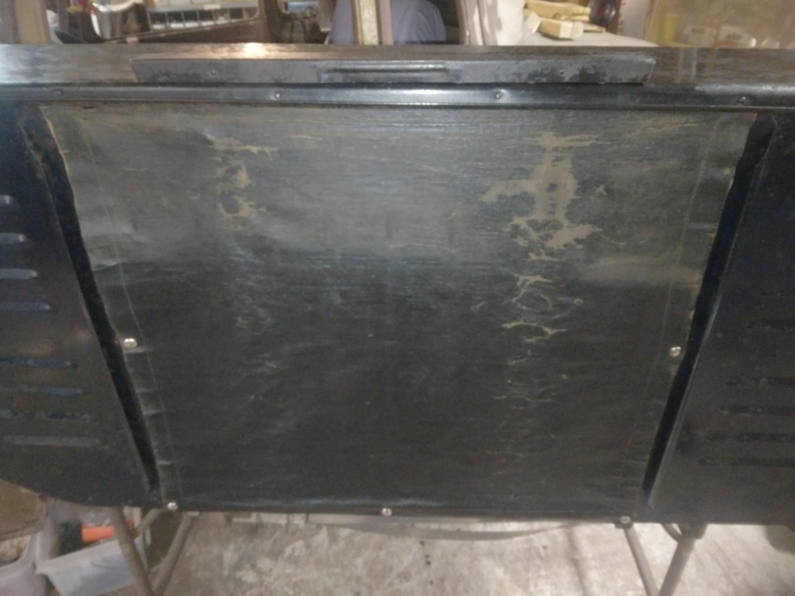I have for sale an extremely rare and hard to find Bird Dog Palace. It mounts on the running board to haul your dogs in. This is only the 3rd one I have seen in 40 plus years of collecting T and A era camping gear and accessories. It is also one of the more unique accessories to be found. The photos will show how it fits on our 27 Touring. It will fit on the 26 27 Ts but the earlier running boards are too narrow. It's advertised to fit most cars. This will be able to ship by UPS or possibly FedEx. The length of box is 51 inches, and girth is 92 inches. (actual shipping box size 16x30x51) and it will weigh about 75lbs possibly a little less depending on how much packing is needed. Overall, the item is in really good shape. Most of the original paint is still on the box. All the wood inside structure is very good and the cardboard insulating panel is still in good shape. The curtain is not torn but it has shrunk so I cannot get all the snaps to close. The outer coating on the canvas has started to flake off. The curtain is plenty good for display but should be replaced if being used with an animal. The box was designed to overhang the running board a little bit to give room for the dogs inside the box.