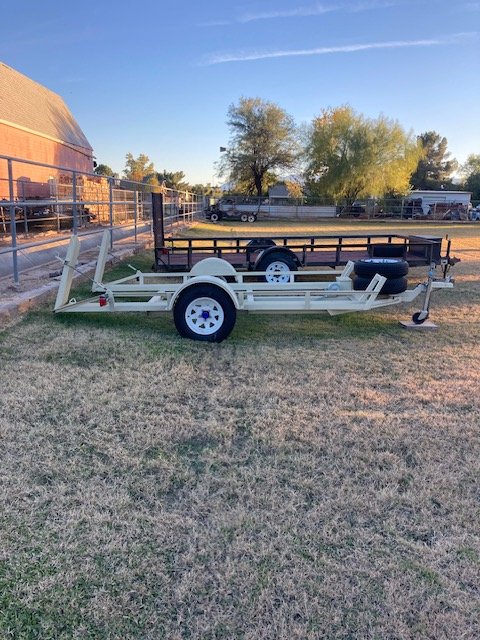 Craig, those are nice trailers. Being able to run the car up on up to a permanent stop makes tying the car down easy. All the tie downs do is hold the car against the stop. I have built five similar ones for myself and others. Mine do have a complete floor. It makes them mush more useful for other stuff, while adding little weight. Can you imagine how easy it would be to manually push/manouvre that trailer around without having tandem axles fighting against you. I do chuckle when I see two spares on a two wheel trailer though. How many people carry 4 spares for their car? In my lifetime I have can remember having just two flats on my trailers. The one spare has always been enough, although I did replace one while on tour, because I had more than 3000km before I was home again. No point in pushing my luck that far.