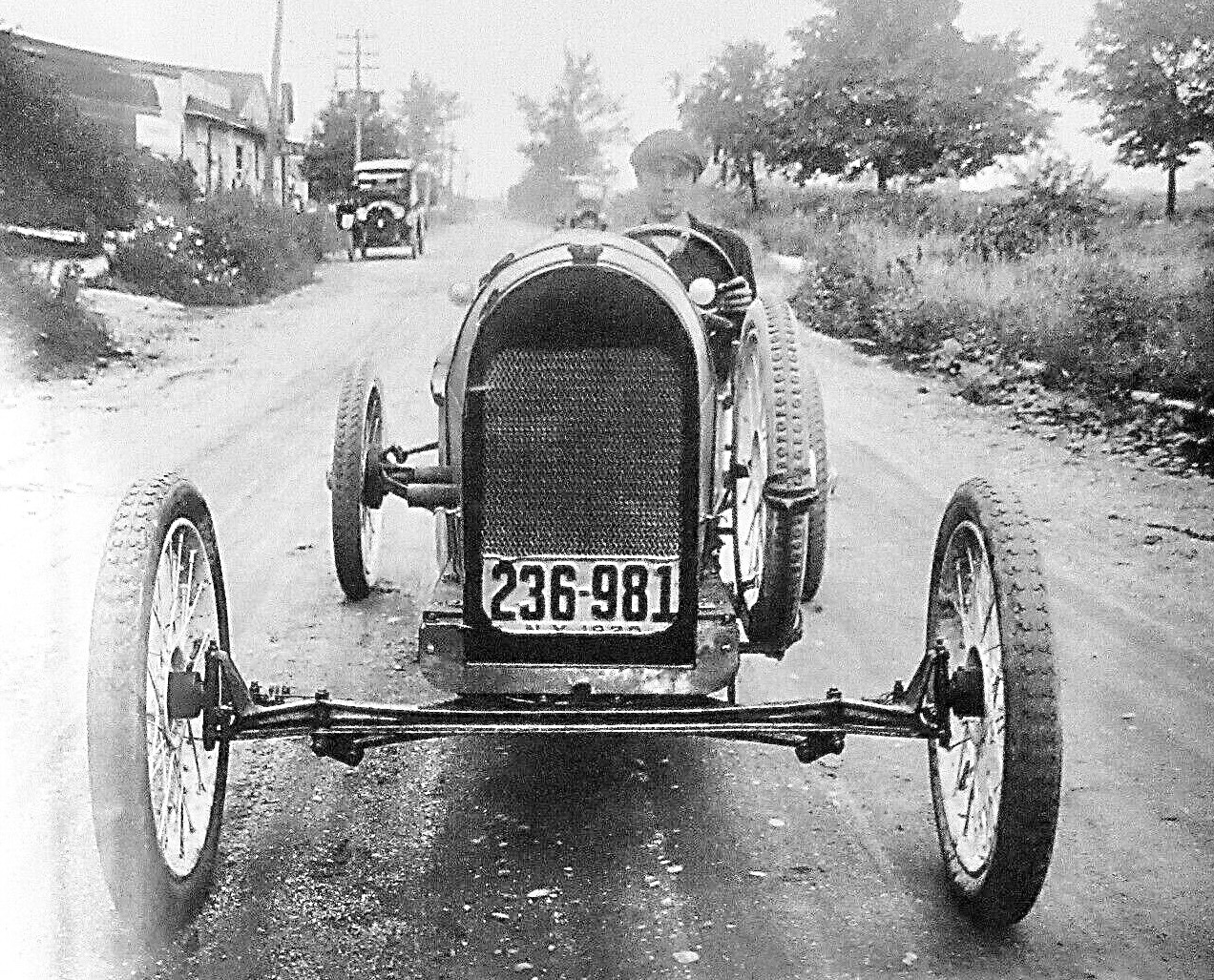 I think this speedster holds one of the Ford Special racer motors. A side view (two versions of a similar speedster as i recall), there is no coilbox, a good clue that it may be a “special” motor, which used a Bosch 2 spark racing magneto instead of the standard low tension flywheel mag.