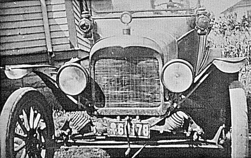 In spite of the poor quality of the photo? The angle and the lighting is perfect! Zooming in closely, it can be clearly seen that the oil sidelamps (diver's side absolutely, passenger's side likely?) are one of the early interim style lamps used in late calendar 1914 and early calendar 1915.