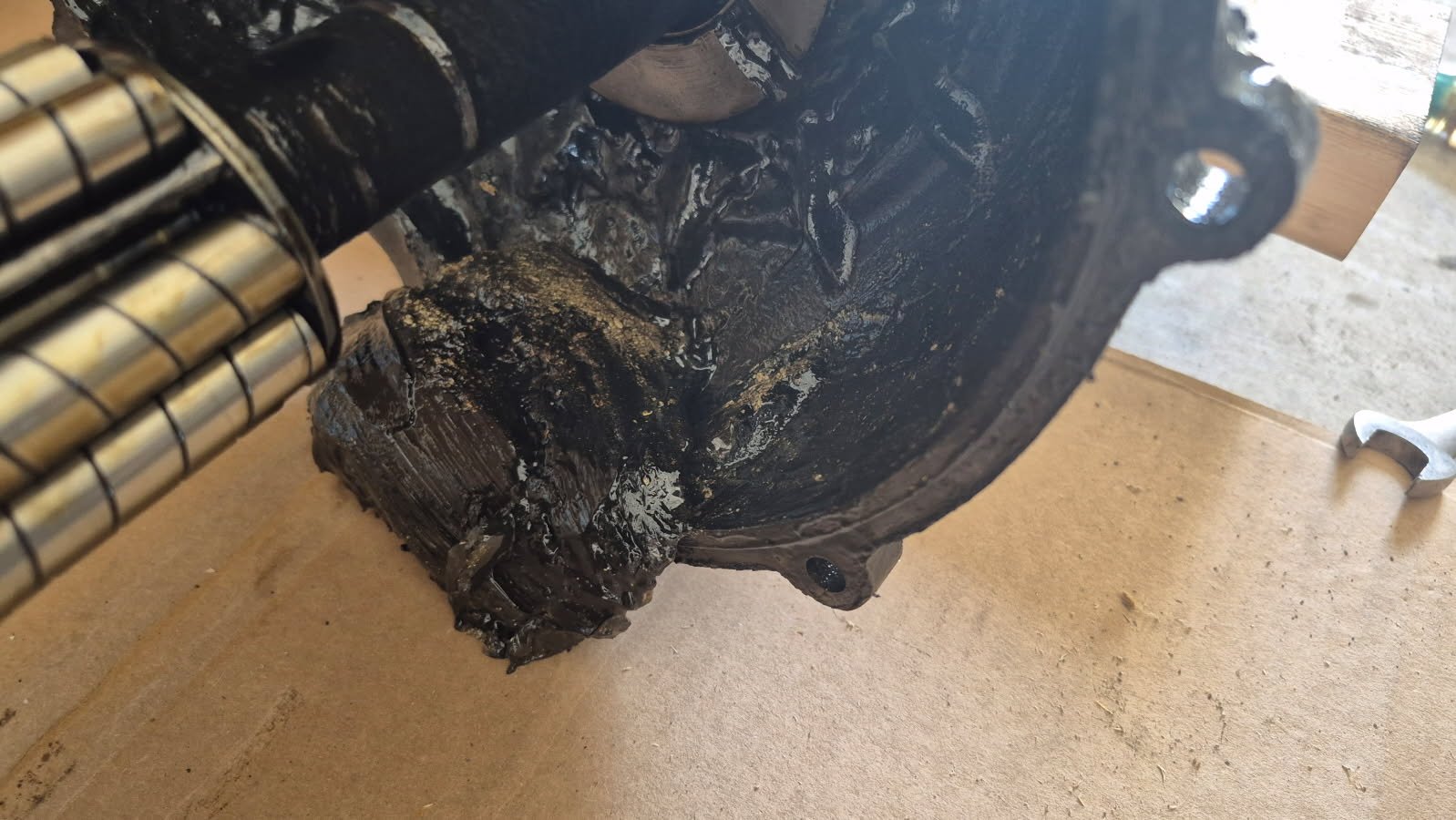 Lots of bronze from the spider bushings glistening in the sludge!