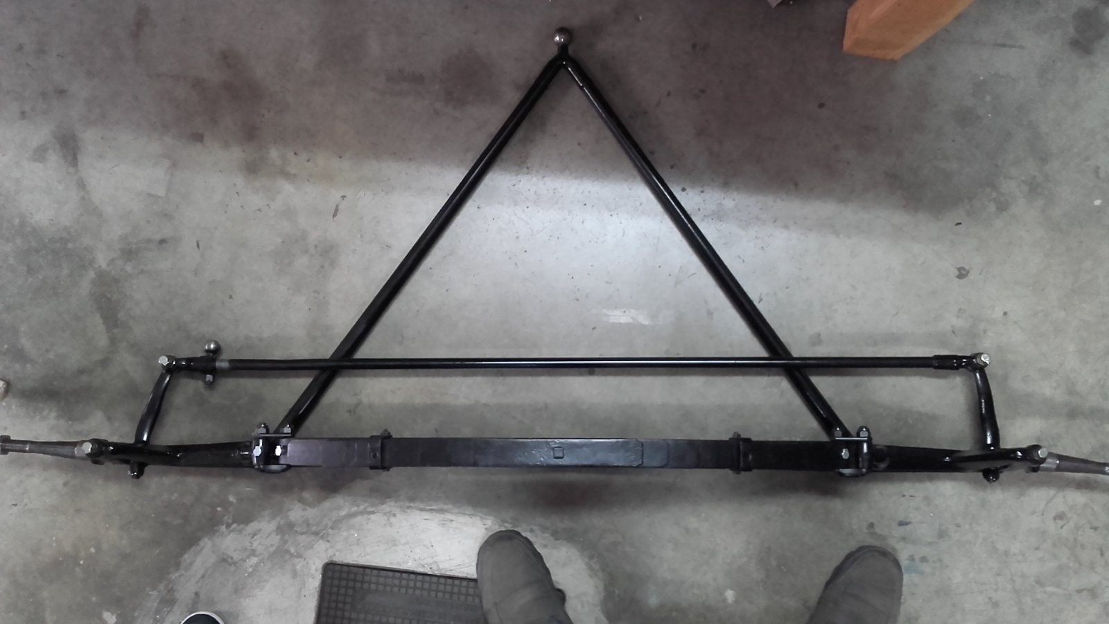 If I force the wishbone ball back into its socket and find a way to have the front axle bent at its perches to a 5 1/2 inch inclination, the ball will pull the socket forward constantly. Is this setup OK? If not, I will need to move the socket forward, which would require moving the engine and rear axle forward, so that doesn't sound like the answer, or somehow lengthen the wishbone.