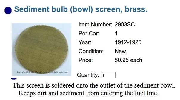 You do have a filter. When you de-solder it you might notice a very narrow edge of cap was rolled over the screen then soldered. Save time just use RTV to hold it in placeJugster wrote: ↑Tue May 06, 2025 12:17 amThanks for all the replies. The surging would indicate a fuel starvation problem. I have no filters and no fuel pump; I'm just gravity-feeding as per original configuration. I think the next step is to check the gas-cap for venting (but it won't be that), then pull the fuel tank out of the car to have it cleaned out. Because of the baffle, I can only see part of the bottom of the tank. Because of the stalling in 20-degree weather, I don't think the problem is vapor-lock, but it wouldn't hurt to insulate the fuel line and exhaust pipe.