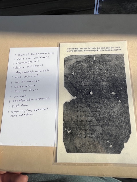 When I got my very original 1910 touring in 1986, it came with a jack. It's a triumph brand jack with a wooden handle. I can't say that it was supplied with the car in 1910 or that it was purchased separately in 1910. All I know is this is a real original car and the jack was with it in 1968. I bought a 1912 in Hershey a few years ago and it had this badly deteriorated list of tool, no jack was listed. Another list of tools from March 1913 lists a jack and handle.