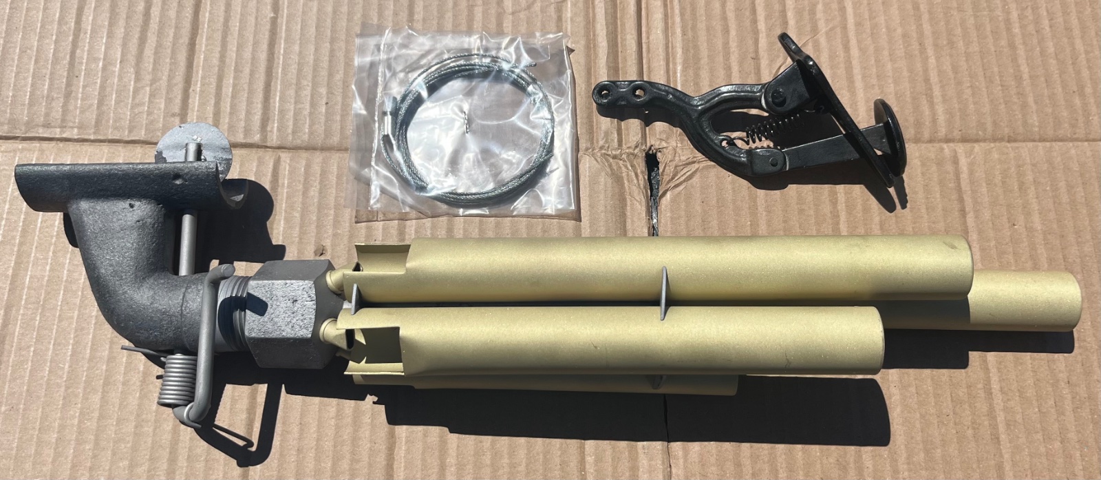 SOLD is a Reproduction Aermore Exhaust Whistle that had been used. Comes with a New Kick Pedal and cable. It has been Glass Beaded and is in good condition. Will need to be painted. $225 plus shipping. Lang’s 1-800-872-7871