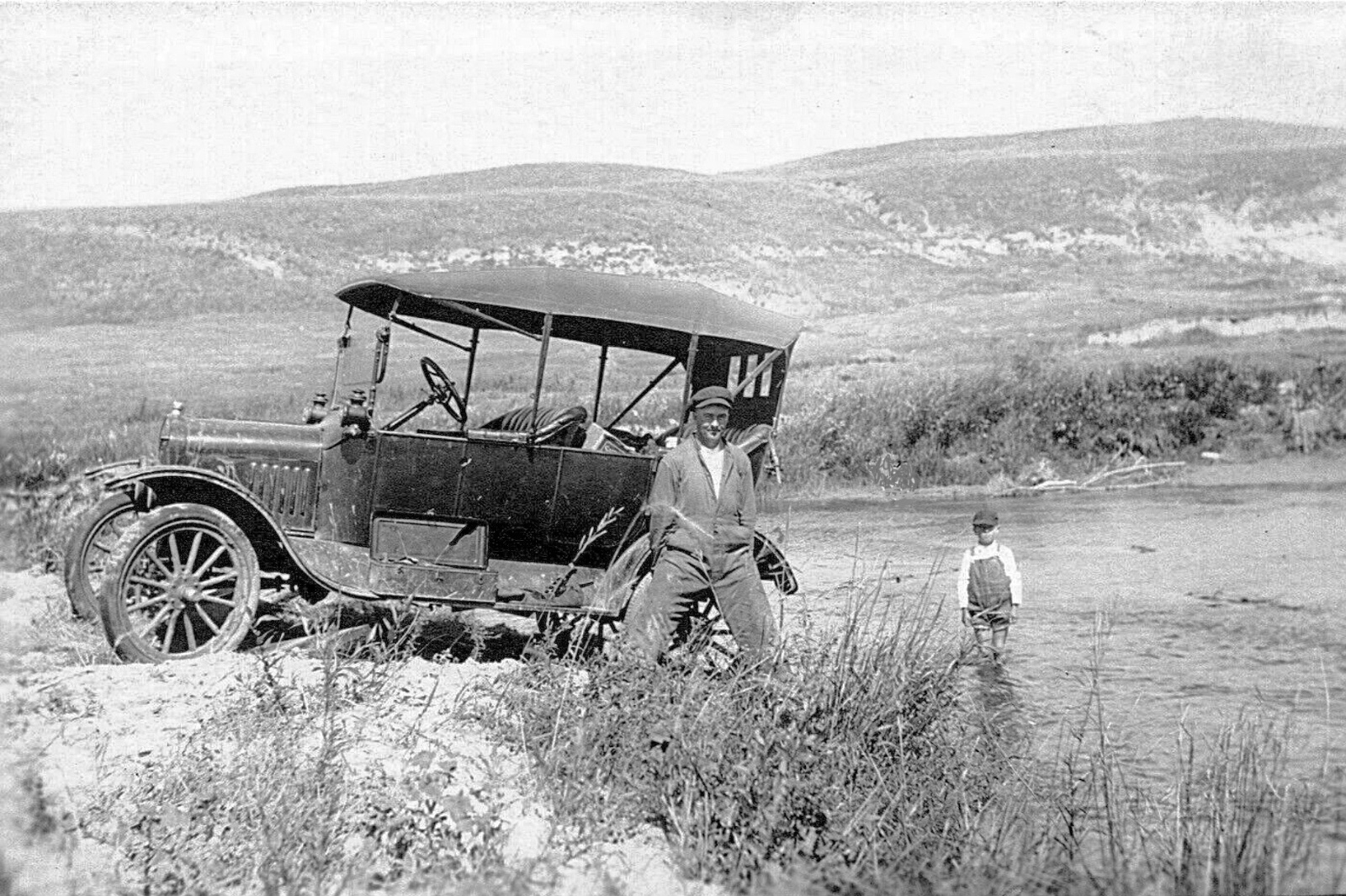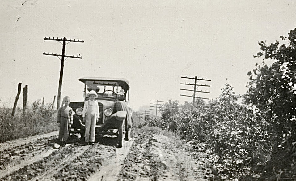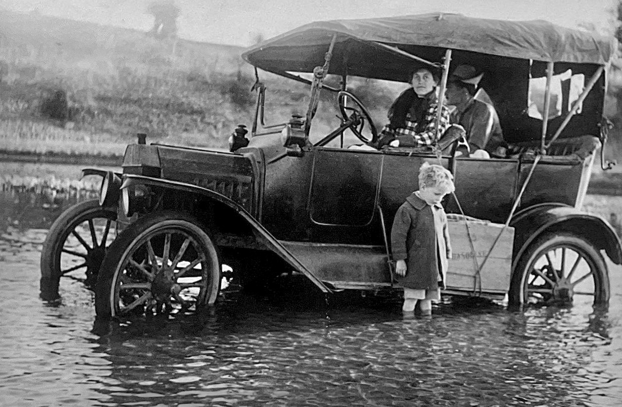 The photo of the older man contemplating whether to go across the muddy road or turn around says a lot when T’s were being used for transportation in the early days of motoring. Could he be thinking about burning out the bands or just turning around. It’s the 12th photo from the top.
