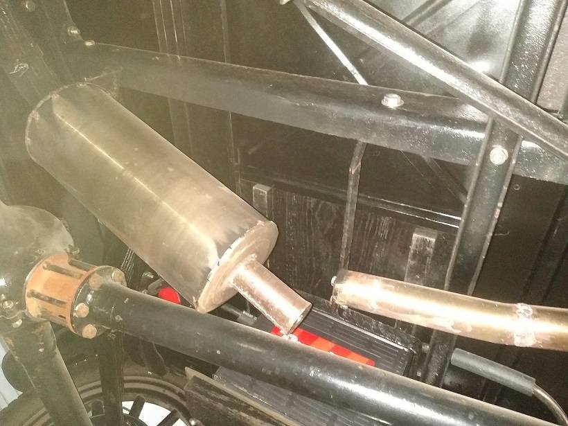 Maybe eight years ago I decided on stainless steel exhaust but they did not exist that I know of, nor was my request for measurements met. So I built my own. It is what it is. I could have ordered a correct muffler to remove one problem in exchange for the problem of rust. No, have never used a clamp on the muffler and thus the reason it fell apart on the shakedown, first ride on the road. I used up all my bailing wire and couldn't find any in the garage. There is an A-Z within a mile so I shopped there. Even though I have an exhaust hanger, I still like the bailing wire idea better and got some 14ga galvanized wire and wrapped it up. I see the battery support but did not want to put any dent in the pipes at the connection point over time that it could continue to move freely as it always has. So, I used the running board bracket instead.