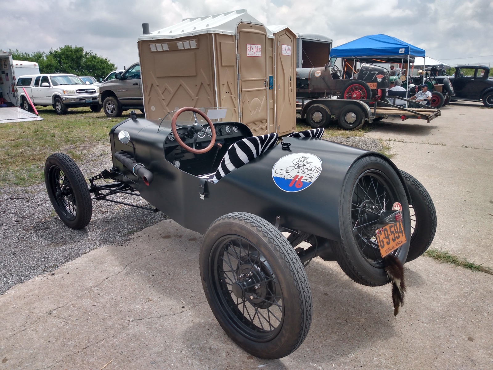 FS Colorado titled as CV "Convertible" using VIN on frame. RAJO 8 plug, Scat 4.25 drilled, full pressure, Bosch front plate with 8 plug distributor, 3" exhaust with cutout. New Warford, 4 to 1 gears, frame boxed, Z'd, X'd shortened, front axle moved forward, 5 T wire wheels. Custom built body, seats, gas tank, frameless Duval style windshield, early '23 radiator and shell with stone guard. Stewart Warner vintage style gauges. The list goes on...