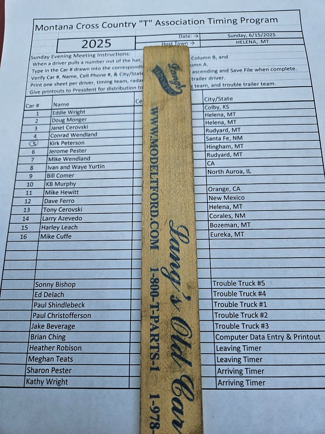 The “2025 Montana 500” has officially begun! We are based out of Helena this year. The initial inspection has been performed and the starting order is as listed below. Our first leg tomorrow will start outside of Helena heading North on 287 and end in Lincoln. From there we will stay on 200 and stop at “Clearwater junction”. After a brief lunch break, we’ll head east on 200, take 141 south, and meet up with hwy 12 back into Helena. Start time is 8:00 am! If you’re in the area(s) stop by and say “HI”! But remember, we are under time!