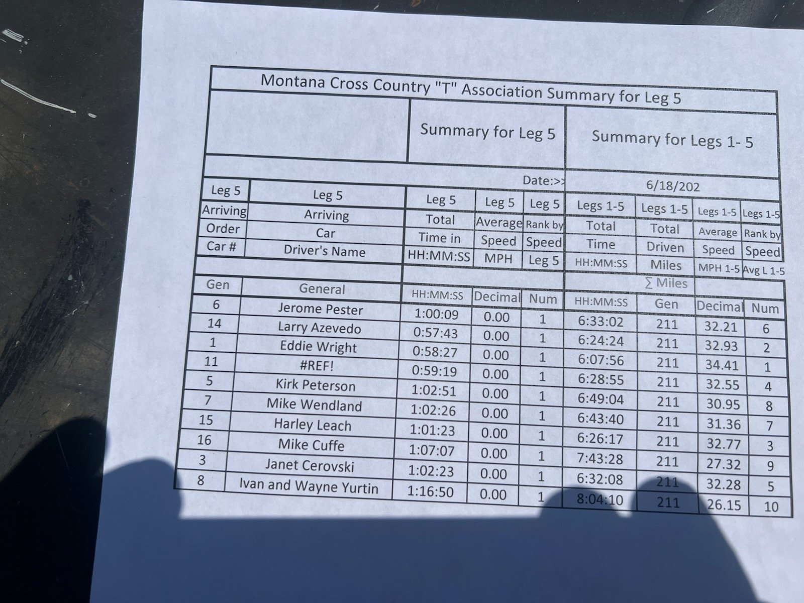 2025 Montana 500 Day 2, Leg 5 Timing Sheet