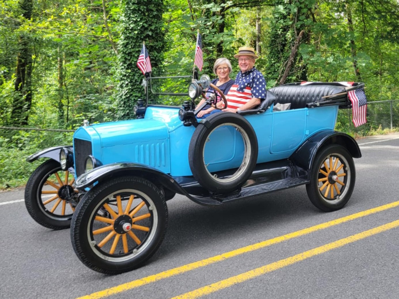 Spent the day touring with the love birds, July 5th. It was amazing to see the both of them sitting side by side enjoying their time together with their model t friends. You could tell just being around them they are still the young couple in love.