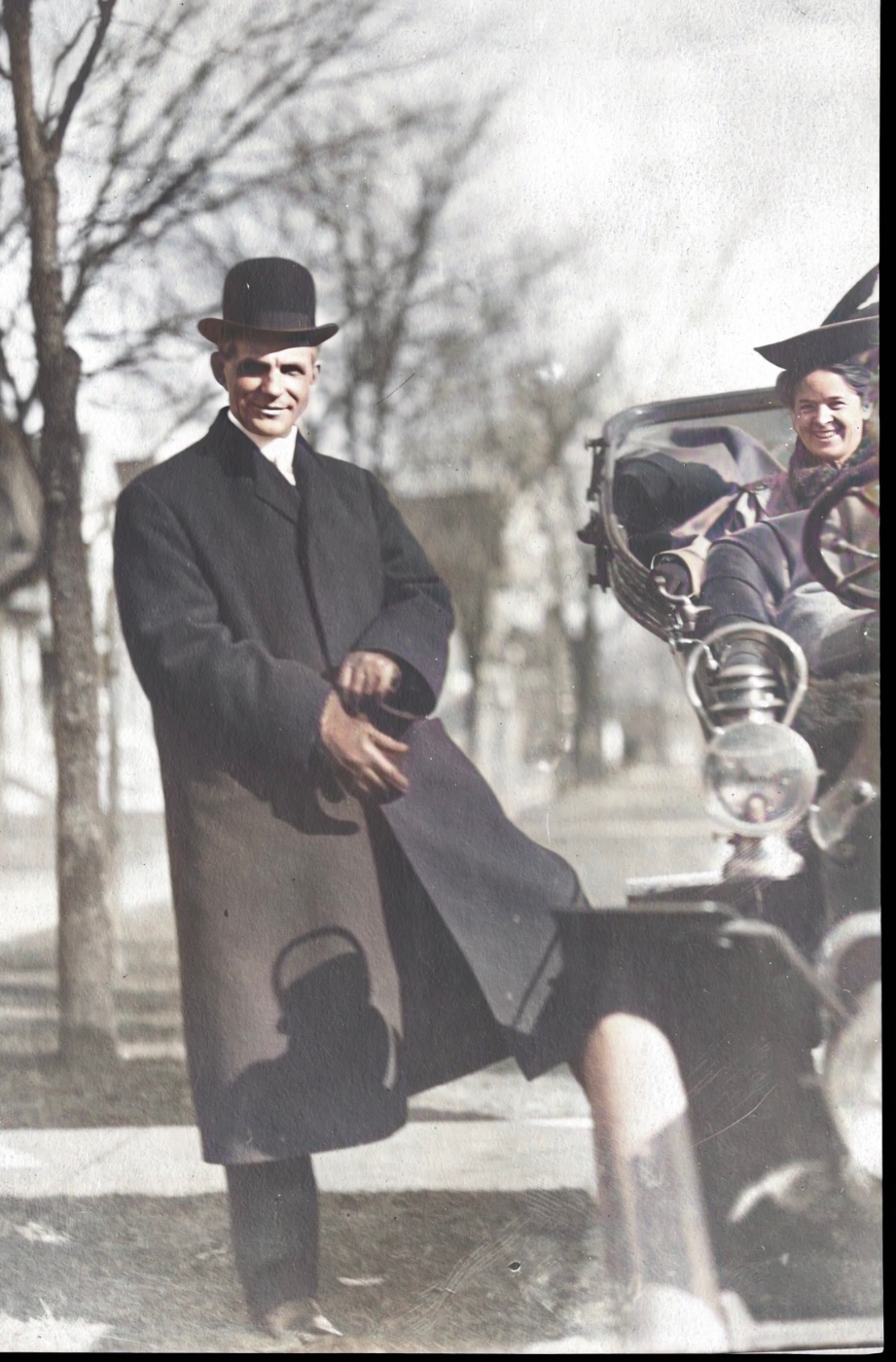 Below, Henry and Clara Ford in a 1905 Ford Model B
