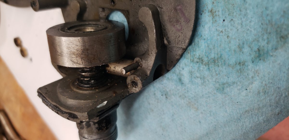 Interesting Tim that mine didn't have the pin . I wound up using a small punch to tap the shaft out of the drive dog . I think that there just wasn't enough end float in the drive shaft . everything turns freely now , but the speed drum seems to be sticking .