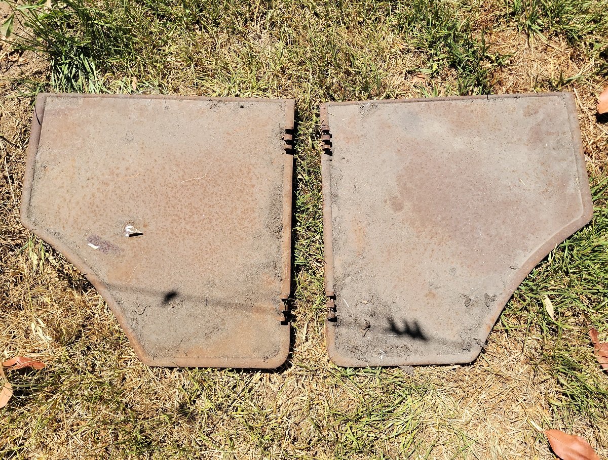 FS: Rear Doors for a 1926 - 27 Touring. These doors came off of a California Desert car and are in pretty good shape, there's surface rust but little or no rust-through; they are quite solid. One of them is "oilcanned" and will need to be straightened, but that's alot easier than fixing rustout. The latch mechanisms are included. Asking $175 for the pair, not including shipping.