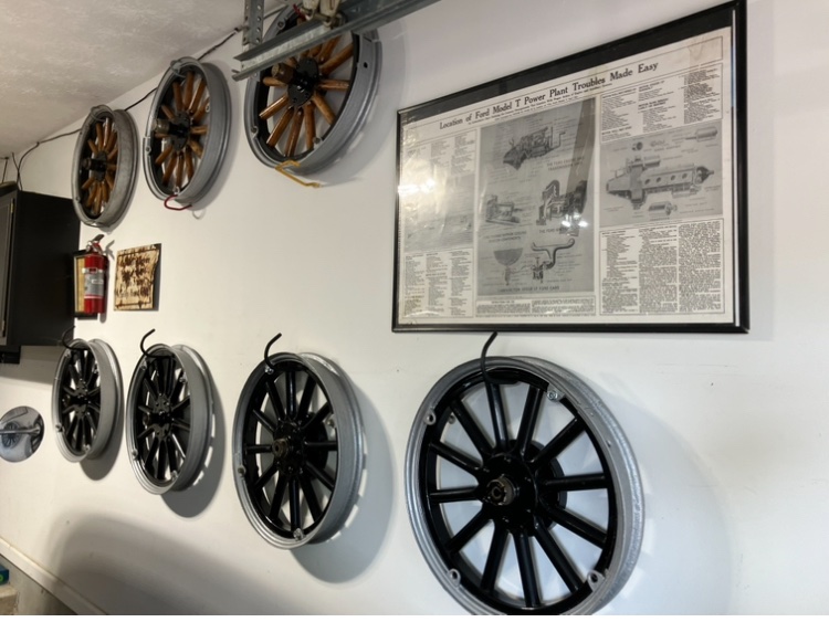 I got a new shoe collection going for my T and hung them on the garage wall as spares. Picked up the black set at homecoming and spent last six weeks cleaning them up. Now I have a choice in what to wear. I sure am tired of painting rims.