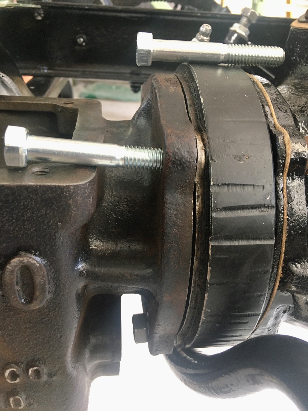 Putting the round disk in place I realized it’s purpose. Giving just enough spacing so the brake equalizer doesn’t hit the transmission. Pump it full of grease for an oil seal.