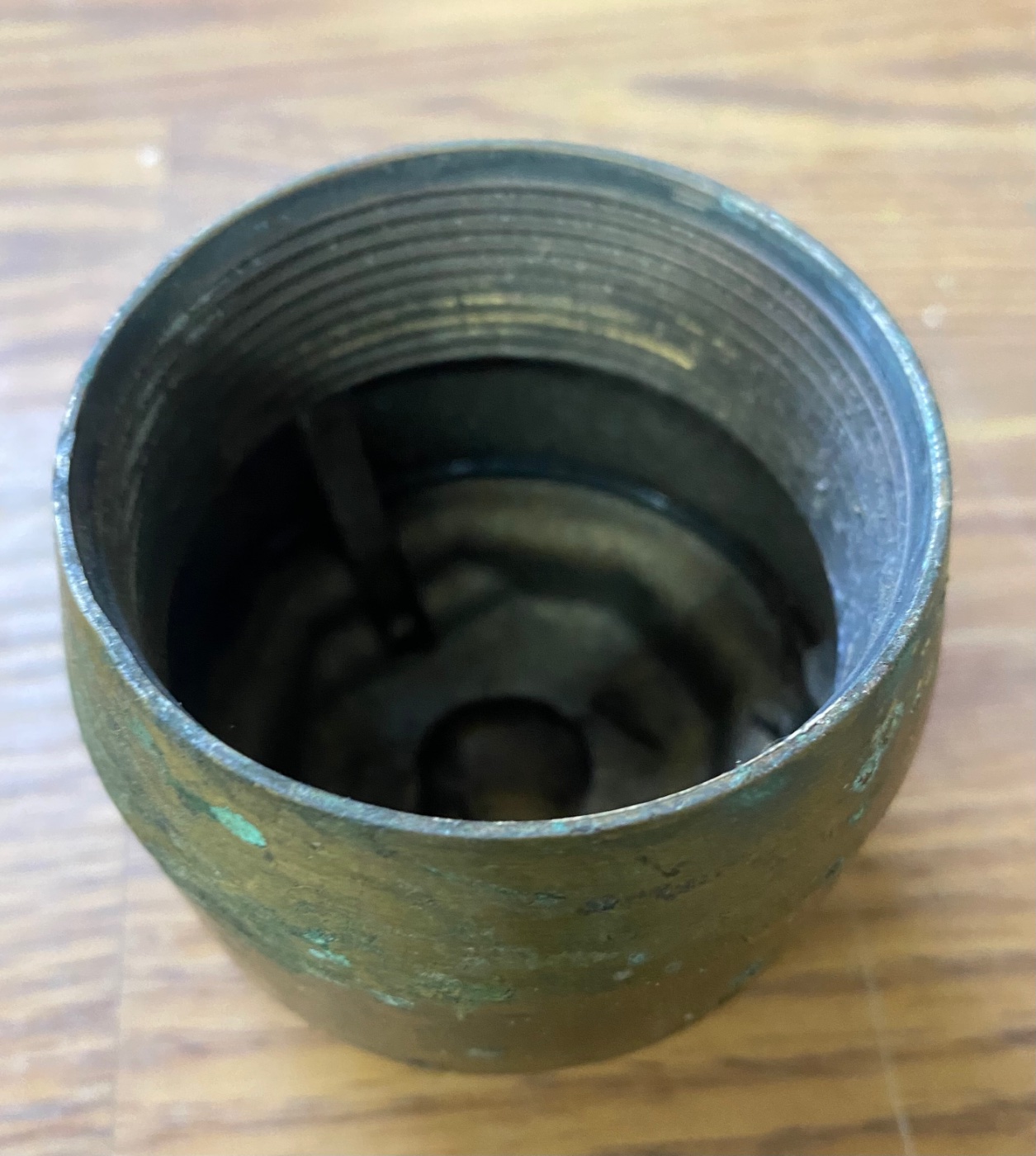 Here’s a very nice original brass, left side, Dayton wire wheel hubcap. The spring tab is strong and works well. The threads look great. $225 with shipping in the US.