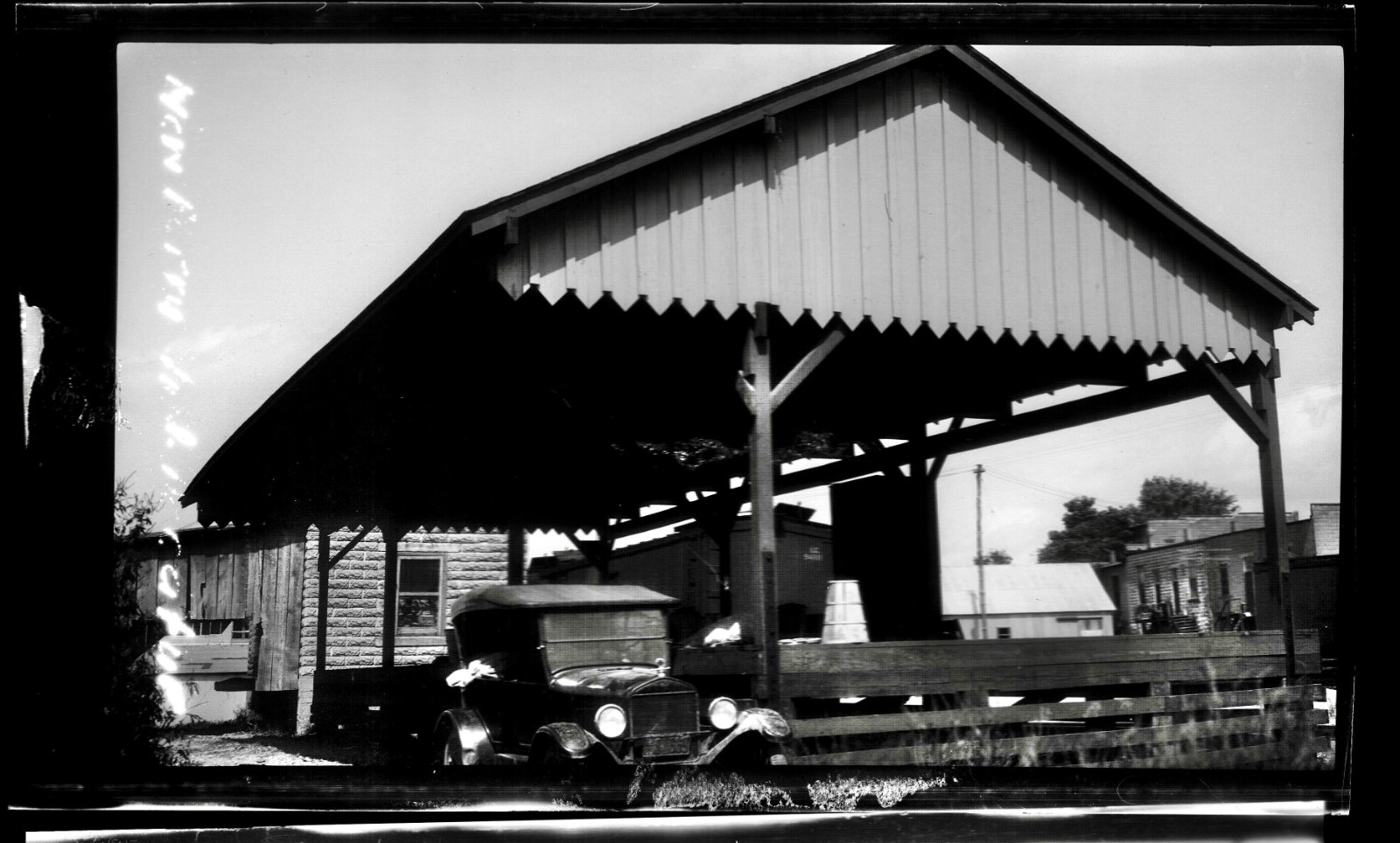 Since I came across the negative of the Model T's under the shed in Independence, Missouri (first post), I had wondered why a railroad would store worn out and rather decrepit looking automobiles under a shed. Scanning some more negatives today, I came across one that provides a little context for the cars under the shed. Turns out that by 1925 or so, the KCS was no longer using their depot in Independence and had leased the building to an auto dealer and the shed was next to the depot. My guess is that they were storing their used cars under the shed.