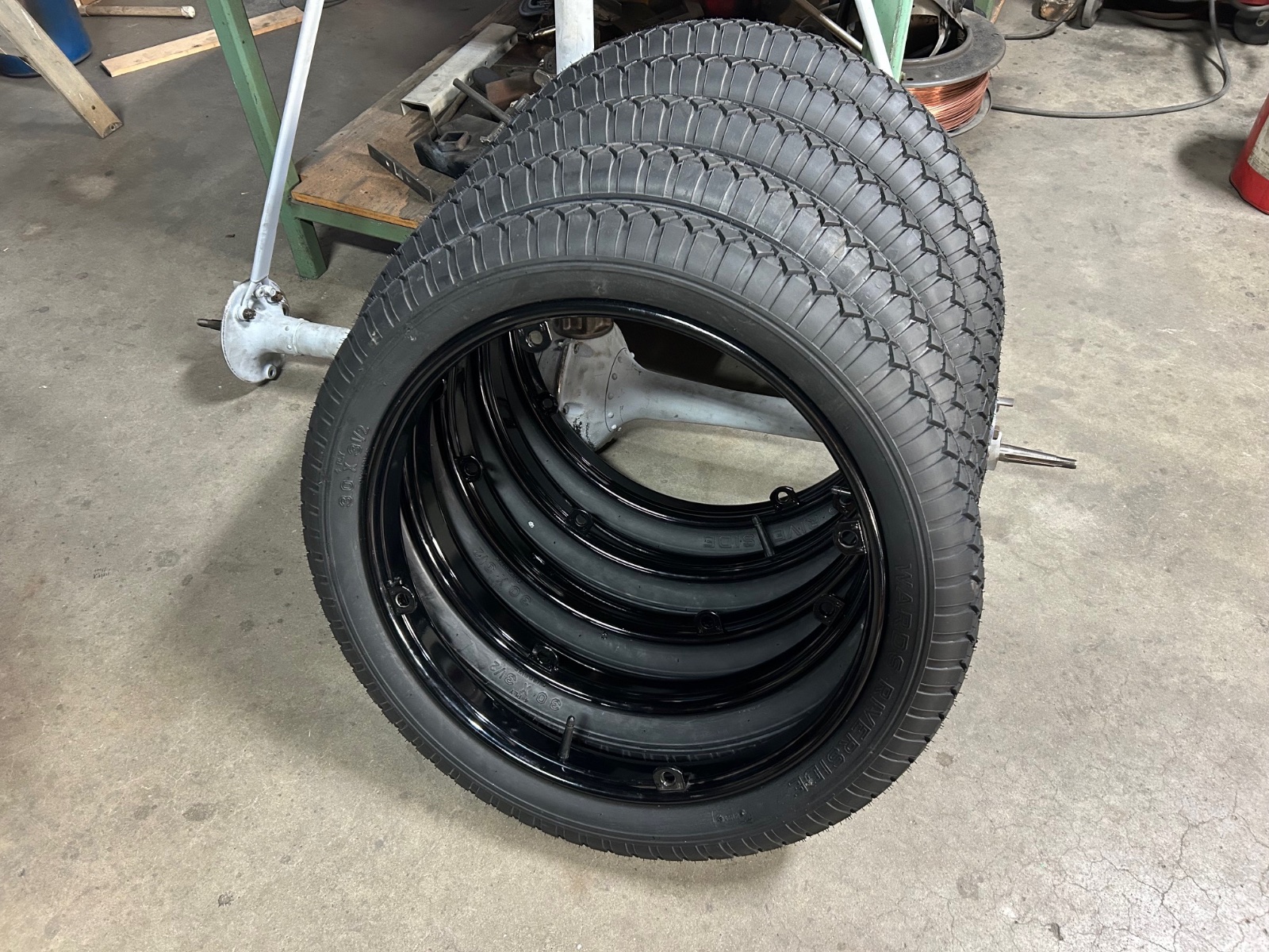 Thanks Art. Everyone’s favorite Sunday afternoon activity, mounting new tires. Some years ago I bought new rims, had them powder coated and stored away till now.