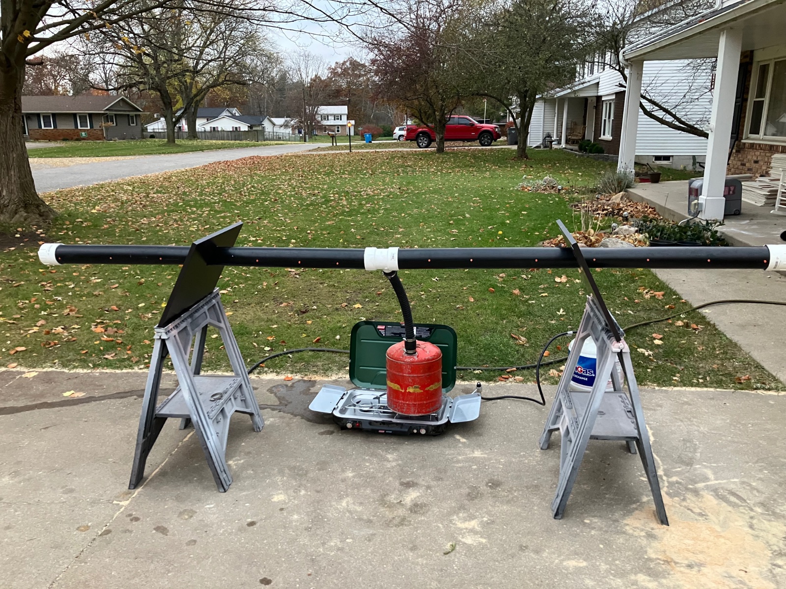 I had to make a crude steam tube… being on the cheap side I sourced secondhand metal gas can and Coleman stove. I used old cabinet doors to hold the steam tubes.