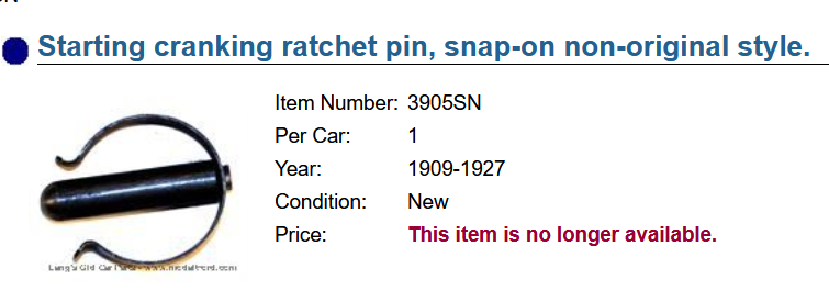 While on the subject of the starting crank ratchet, now might be a good time to bring up the subject of the pin used to attach the ratchet to the starting crank. When the forged design crank ratchet was adopted in late 1908, ....
