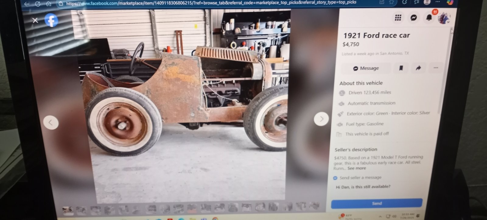 Re: Unrestored, Complete Model T Race Car in San Antonio, TX