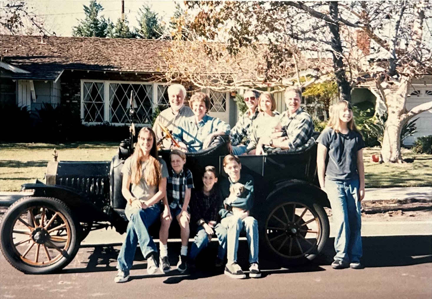 We found a photo from a long time ago of the family (I'm holding the dog, I'm 42 now!). Grandparents are sitting in the front seats.