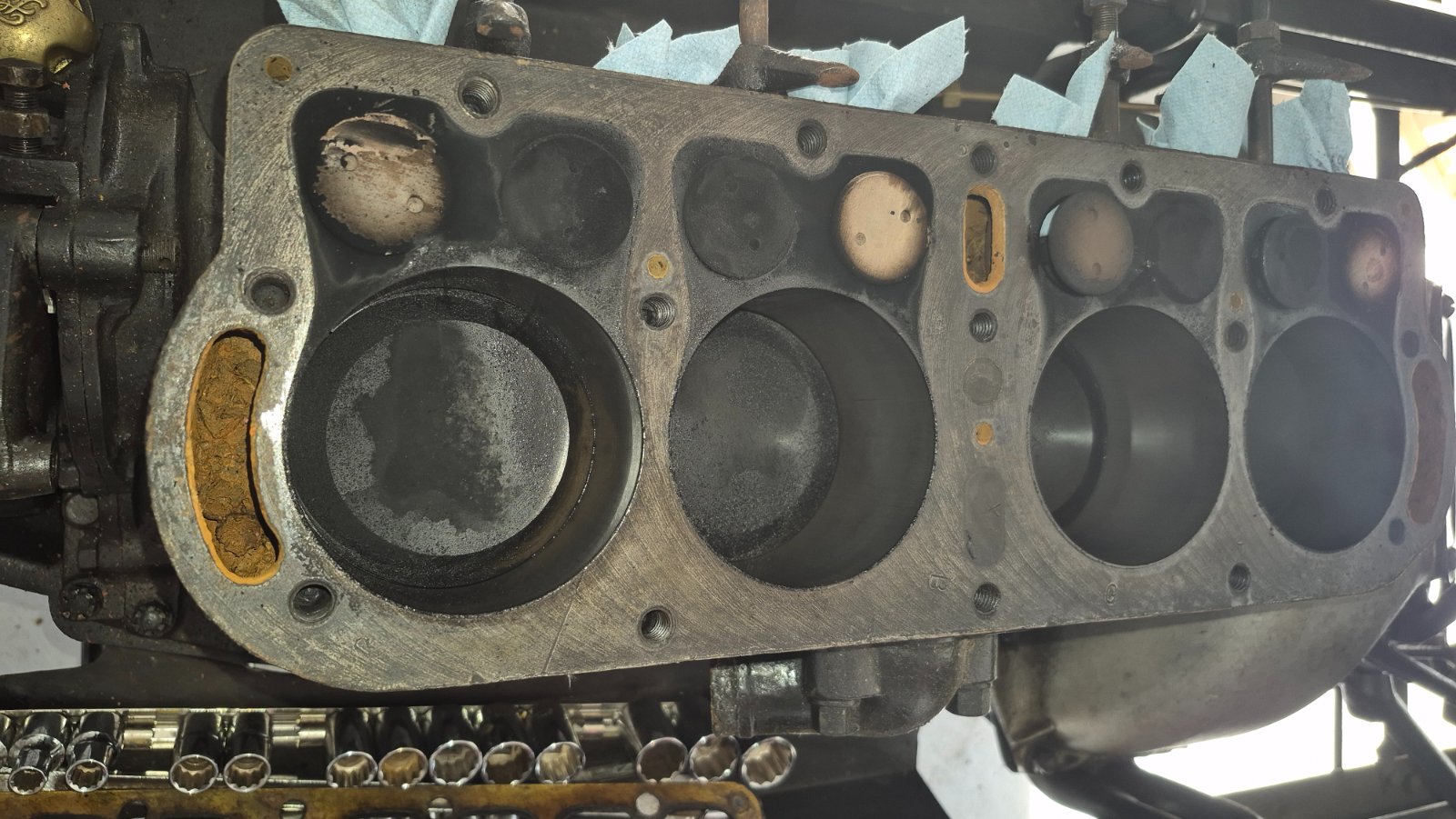 One of which I gulped looking like a crack in the block, but no visible appearance externally nor in the bore, neither in all my years of engine rebuilding decades ago have I ever seen a V internal crack....crossing fingers just an old scratch.