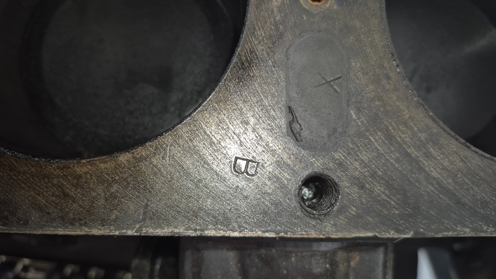 Hey Pat, not that blemish, it was the line I noticed between the bore and the G stamp.... but after looking at it closer it appears to be just a fine surface scratch. I wont worry until the block is cleaned up & magnafluxed...