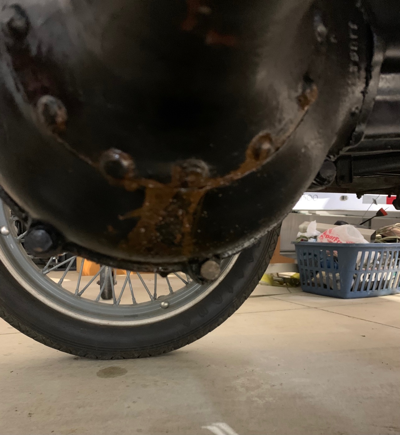 After driving my ‘14 Touring 100+ miles this summer, she appears to have developed a new leak. When I added the small drum ruxtell a few years back, I swapped out the right hand axle housing with the original 12 rivet one, just to keep the “correct” look. But over the last few weeks in my shop…