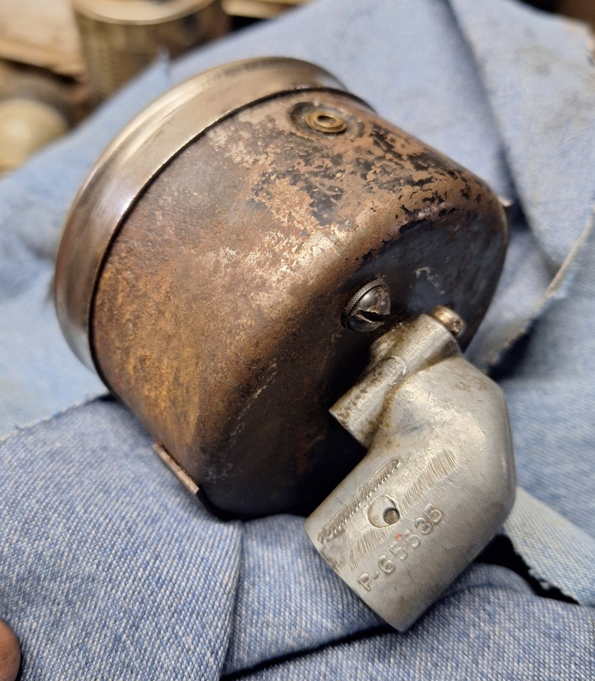Nice condition. Works well/steadily when driven with battery drill. 3 and1/4" across nickel plated brass bezel. $120 with tracked postage to your door.