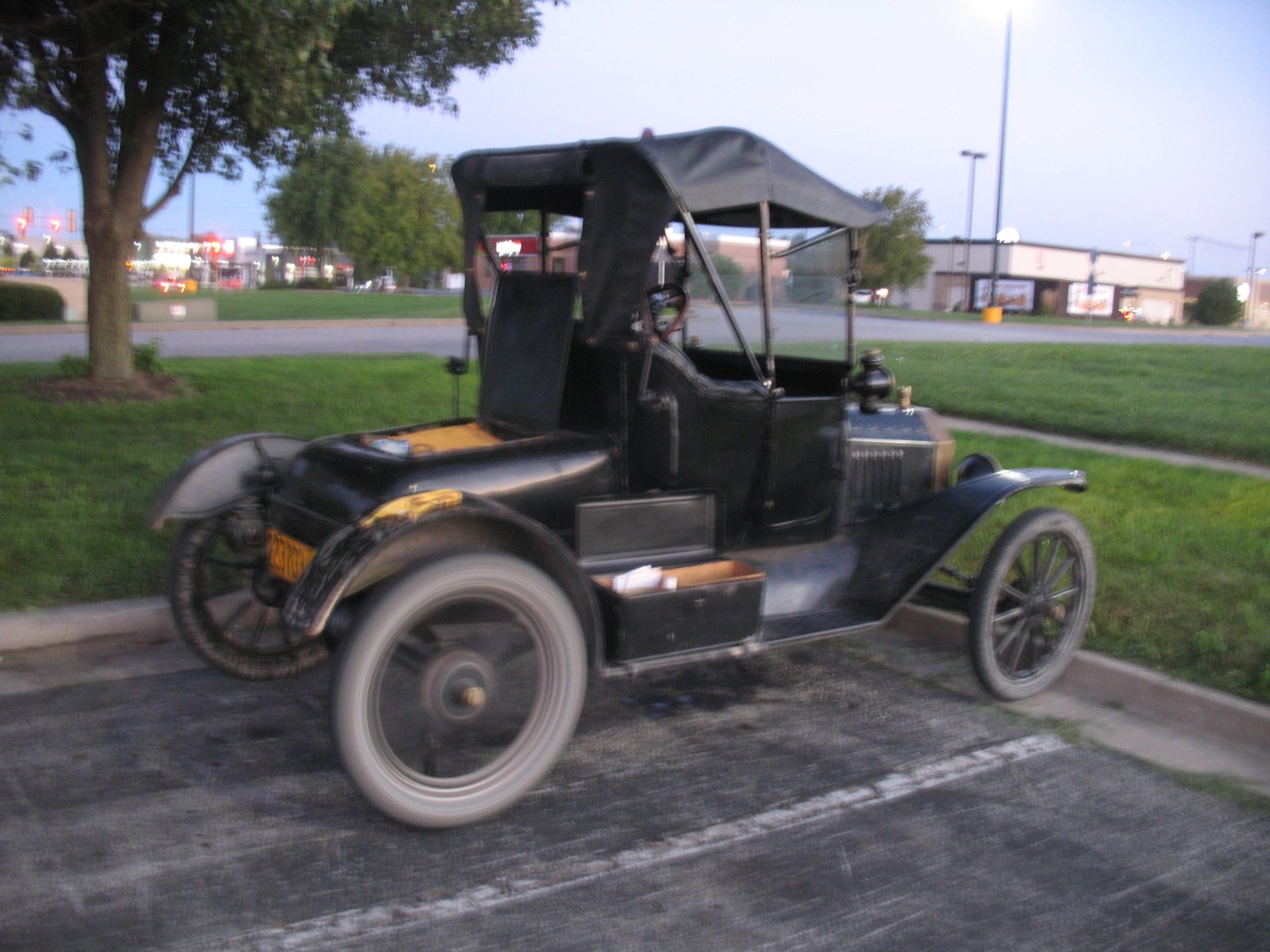 I suppose I should mention accommodations for Model T travel. In that department it's definitely different strokes for different folks. On some of my trips I've indulged in the luxury of a motel once or twice due to weather or the desire to have folks in the next county not smell me coming. But that has not been my usual style. Most nights I would find an out-of-the-way spot to bed down. In a city it was often on the remote fringe of a large parking lot. In the country or near a small town I would find a spot near the road but out of sight behind trees or tall crops. Yes, I know some folks think of sleeping on the ground as a great hardship. Nope. I've been doing it since 1946 that I remember, and maybe when I was so young that I don't. Using a sleeping bag on a foam mat on a canvas tarp has not kept me awake. In a pinch involving rain during the night I have even slept in the car. A tarp over the runabout turned it into a tent where I stayed dry. Of course, sleeping in a Model T depends on the layout of its interior, but I can tell you it didn't keep me awake.