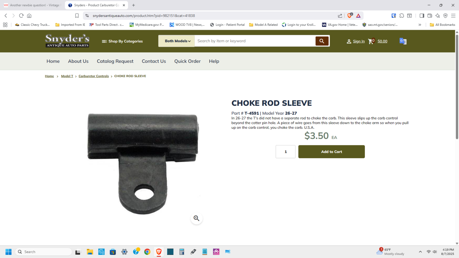 Sorry, I thought that those were my original photos. Thanks!Moxie26 wrote: ↑Thu Aug 07, 2025 5:18 pmYou will need to get a similar set screw choke wire anchor on the rod and position it so it does not interfere with the hot air pipe when you turn the mixture screw... After that's done, just simply measure for another connecting wire between the pull and the carburetor choke lever