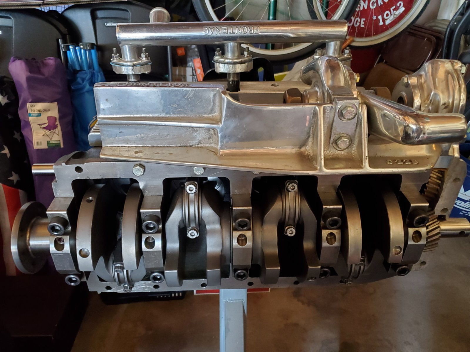 New 5 main short block with Crower billet crank and rods. New Ross pistons, oil pump bracket and V-8 pump. Rajo BB head already done for block with new push rods, Chaffin intake manifold. Fronty side drive with water pump and parts to finish. Kirk Wright billet flywheel, new trans shafts, McEachern triple gears with needle bearings, ball bearing 4th main, etc. Asking $16,500.00 or reasonable offer, let's talk-must sell. Socal delivery available, other options negotiable. Have speedster chassis available for extra cost if you want a complete project.