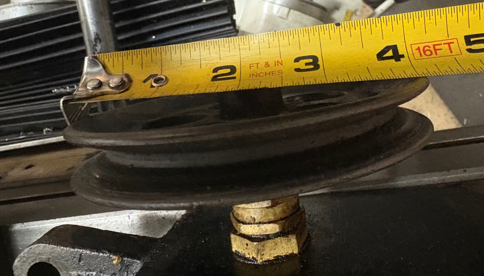 It just so happens that I have the McCord Oiler for my 1908 Model S Roadster on a bench at the moment so I took a picture of the pulley with a tape measure next to it.