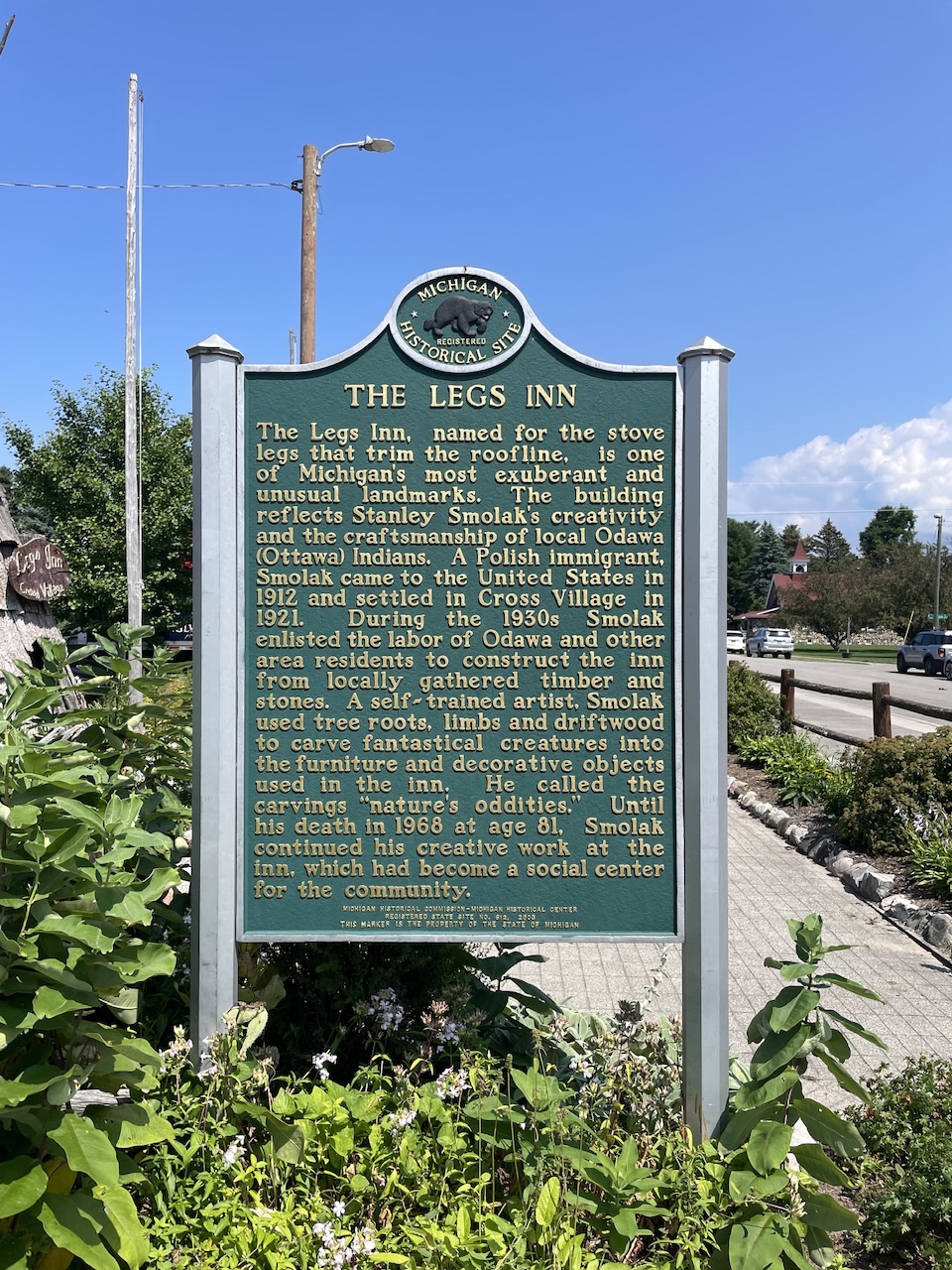 The resturant is the Legs Inn. Built by immigrant Mr. Smolak who came to the United States in 1912 and settled in Cross Village in 1921. During the 1930s Smolak enlisted the labor of Odawa and other area residents to construct the inn from locally gathered timber and stones.